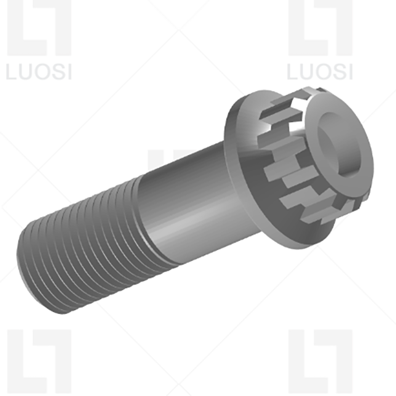 12 dantų splino varžtų su flanšu galva yra suprojektuota su 12 dantų, kurie gali glaudžiai tilpti su atitinkamu splino lizdo veržliarakčiu. Jo apačioje yra flanšas kaip tarpiklis, kuris gali padidinti kontaktinę plotą su prijungta medžiaga.