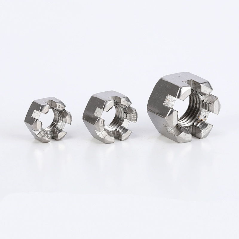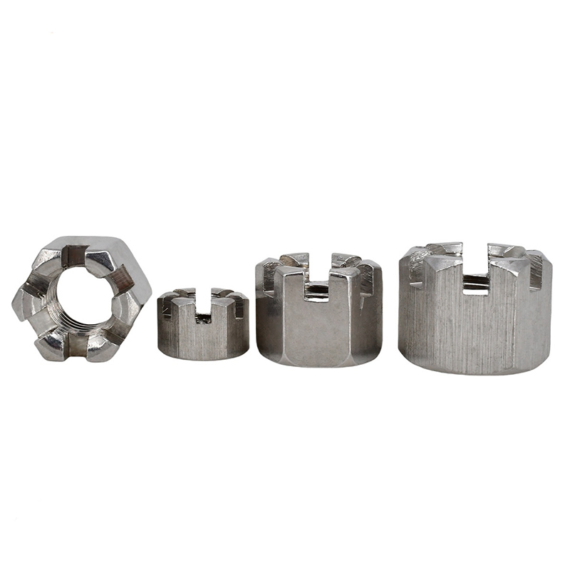Pasirinkus medžiagą korozijai užkariaujant vainiko riešutą su lizdu, laikomasi griežtų taisyklių, kad įsitikintumėte, jog jie veikia taip, kaip turėtų. Plieniniai riešutai gali atitikti daugelio pagrindinių standartų, įskaitant ISO 898-2 (apimantis 6, 8, 10 ir 12) ir SAE J995 (5 ir 8 lygiai, našumo lygiai) reikalavimai. Jie taip pat atitinka tokius standartus kaip ASTM A194/A563 ir yra tinkami dažniausiai taikymo scenarijams. Nerūdijančio plieno naudoja AISI 304/316 arba ASTM F594. Atliekant sunkias kosmoso ir kosmoso darbus, jie naudoja aukšto našumo lydinius, tokius kaip A286 arba „Inconel 718“. Plyšinės vainiko veržlės medžiagos laipsnis daro tiesioginę ir lemiamą įtaką jo stiprumo indeksui, atsparumui temperatūrai ir atsparumui korozijai.