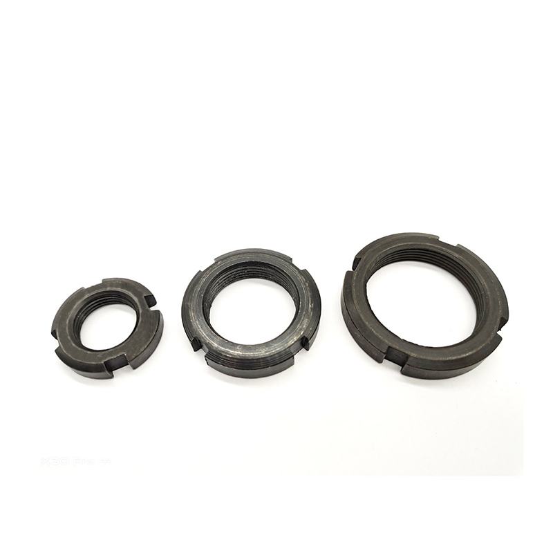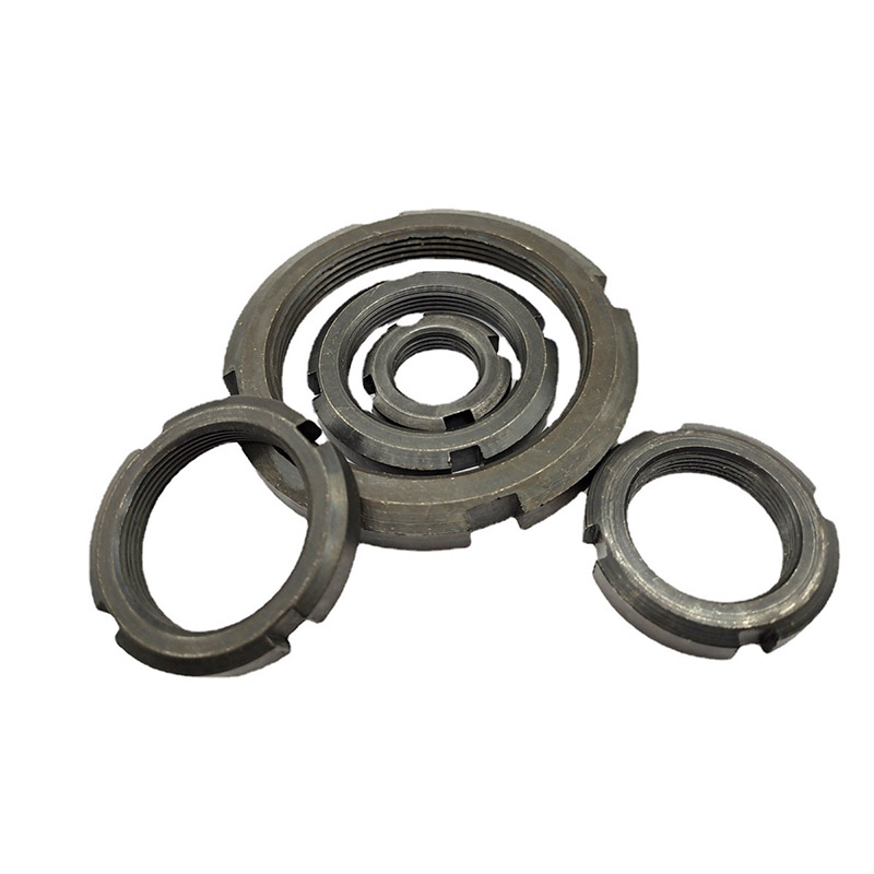 A: Dviguba saugia išpjova fiksavimo apvali veržlė skirta saugiai užsifiksuoti ant srieginio komponento, tuo pačiu leidžiant lengvai apžiūrėti. Pagrindinė šios dvigubai apsaugotos išpjovos fiksavimo apvaliosios veržlės funkcija yra užkirsti kelią vibracijos atsipalaidavimui tokiose agregatuose kaip besisukantys velenai, ašys ir tiksliosios mašinos. Jo apvali forma su plyšiais leidžia įkišti kaištį arba saugos vielą, todėl dvigubai saugiai pritvirtinta išpjova fiksuojanti apvali veržlė yra būtina saugai svarbiose srityse automobilių ir pramonės sektoriuose.
