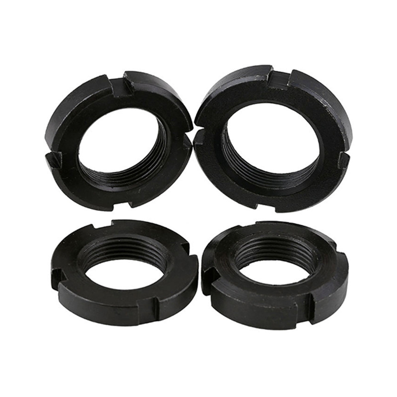 Kritiškai svarbi fiksavimo apvali veržlė su įpjovomis