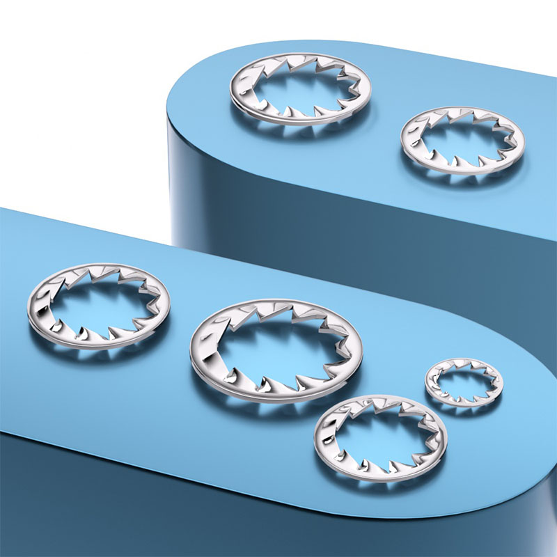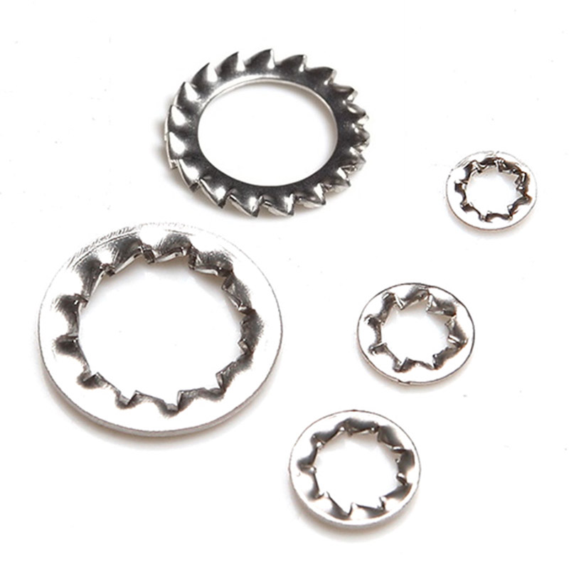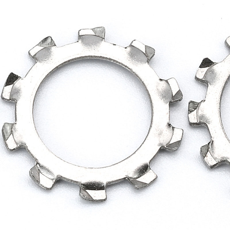Išorinės dantų užrakto poveržlėsyra gaminami iš anglies plieno arba nerūdijančio plieno, todėl jie yra tvirti ir atsparūs rūdims. Kai kurie tipai yra termiškai apdoroti, kad būtų sunkiau (maždaug 40-50 HRC), todėl jų dantys geriau sugriebia. Nerūdijančio plieno versijos (pvz., SS 304 arba 316) gerai veikia drėgnoje ar cheminėje aplinkoje, o cinko dengtose-papildomos apsaugos nuo rūdžių. Medžiaga pasižymi pavasariška kokybe, todėl poveržlė gali šiek tiek pasilenkti esant slėgiui, tačiau vis tiek išlieka nuolatinė įtampa. Jie yra pažymėti tiksliai, kad įsitikintų, jog visi dantys yra vienodos formos ir dydžio, todėl kiekviena partija veikia vienodai. Būdami ir tvirti, ir lankstūs, šios poveržlės yra geros tiek sunkiųjų mašinų, tiek tikslios įrangos sąrankoms.