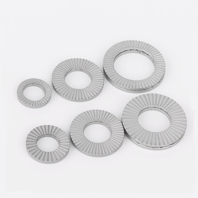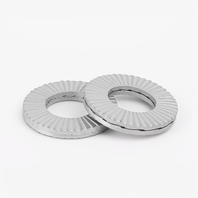 „Fail Safe Safe Dviejų raukšlių“ fiksavimo poveržlės paprastai gaminamos iš didelio anglies plieno (pvz., SAE 1070 arba 1095) arba lydinio plieno. Šios medžiagos suteikia skalbimo mašinoms reikalingas elastines savybes tinkamam veikimui, tuo pačiu suteikia didelį tempimo stiprumą, reikalingą patikimam veikimui plačiomis eksploatavimo sąlygomis. Natūralus „Spring Steel“ sugebėjimas atšokti atgal leidžia, kad skirtukai daug sulenktų, kai juos įdedami, sukuriant svarbią fiksavimo jėgą, kuri priešinasi posūkiui. Juose esanti anglis daro plieną pakankamai kietą, kad mažos kalvagūbriai tikrai galėtų įsigilinti į paviršius. Plieno gedimas Saugus Dviejų raukšlių fiksavimo poveržlės yra pakankamai stiprios, kad būtų galima reguliariai naudoti, ir situacijose, kur yra daug streso.