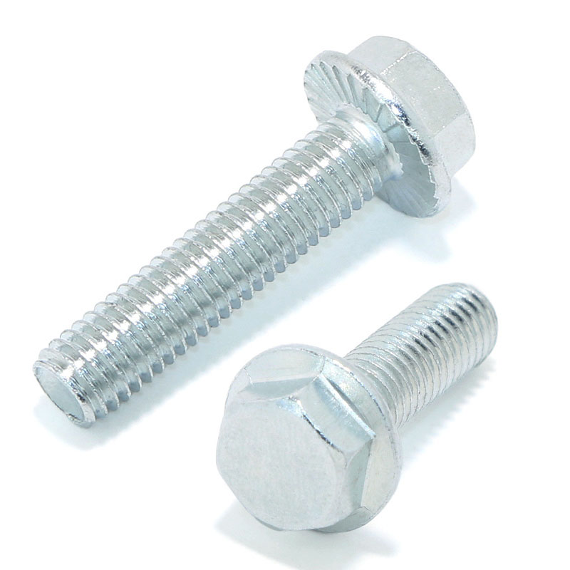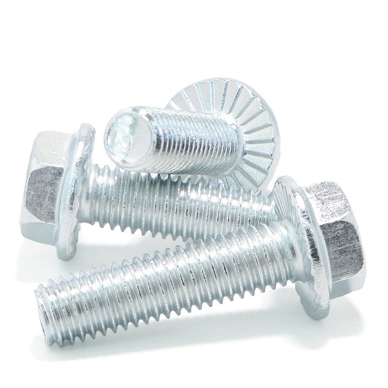 Šio tipo flanšiniams varžtams taikomi aiškūs tempimo stiprio standartai (dažniausiai naudojamos 4,8 ir 5,6 klasės, atitinkančios atitinkamai 400 MPa ir 500 MPa minimalų tempimo stipris). Vardiniame diapazone jis gali atlaikyti tiesioginę traukimo jėgą be akivaizdžių deformacijų, todėl įprasto montavimo ir kasdieninio naudojimo metu jis nesulūžtų. Tempimo duomenys tikrinami vieningomis sąlygomis, o naudotojai gali tiesiogiai patikrinti pažymėtas vertes, kad atitiktų įrangą ir statybos scenas. Po terminio apdorojimo kietumas kontroliuojamas fiksuotame diapazone, todėl gaminys nebus per trapus ar per minkštas. Tvirtai suspaudus jis atsparus paviršiaus įlenkimams ir greitai nesusidėvi, net jei dažnai jį išardote ir vėl sujungiate. Kietumo vertės išlieka stabilios tarp partijų, todėl dideliuose projektuose nėra didelio skirtumo tarp atskirų dalių. Dėl specialios kontaktinio paviršiaus konstrukcijos ši tvirtinimo detalė patikimai neslysta veikiant šoninei jėgai. Suspaudimo jėga pasiskirsto tolygiai, o tai sumažina pasislinkimo ar atsipalaidavimo riziką dėl vibracijos ar nedidelių judesių. Jam nereikia papildomų dalių, kad būtų išlaikytas šis našumas, o jungtis išlieka stabili ilgą laiką be dažno pakartotinio tvirtinimo. Atsparumas nuovargiui tikrinamas kartojant įtempių ciklus, o našumas laikui bėgant mažėja lėtai. Jis puikiai tinka įrangai, kuri įsijungia ir išsijungia arba turi reguliarią vibraciją, išvengiant nuovargio įtrūkimų po ilgalaikio naudojimo. Visi mechaniniai parametrai aiškiai atspausdinti gaminio etiketėje, todėl naudotojai gali lengvai patikrinti ir pasirinkti tinkamas specifikacijas, atitinkančias faktines darbo sąlygas.