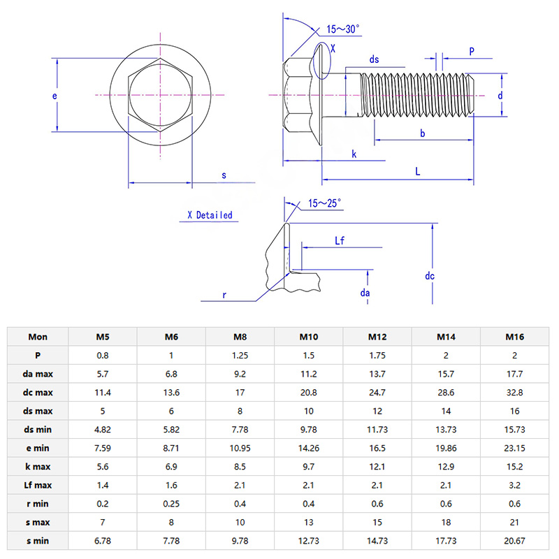 Aukšto sukimo momento šešiakampis galvos flanšo varžtai