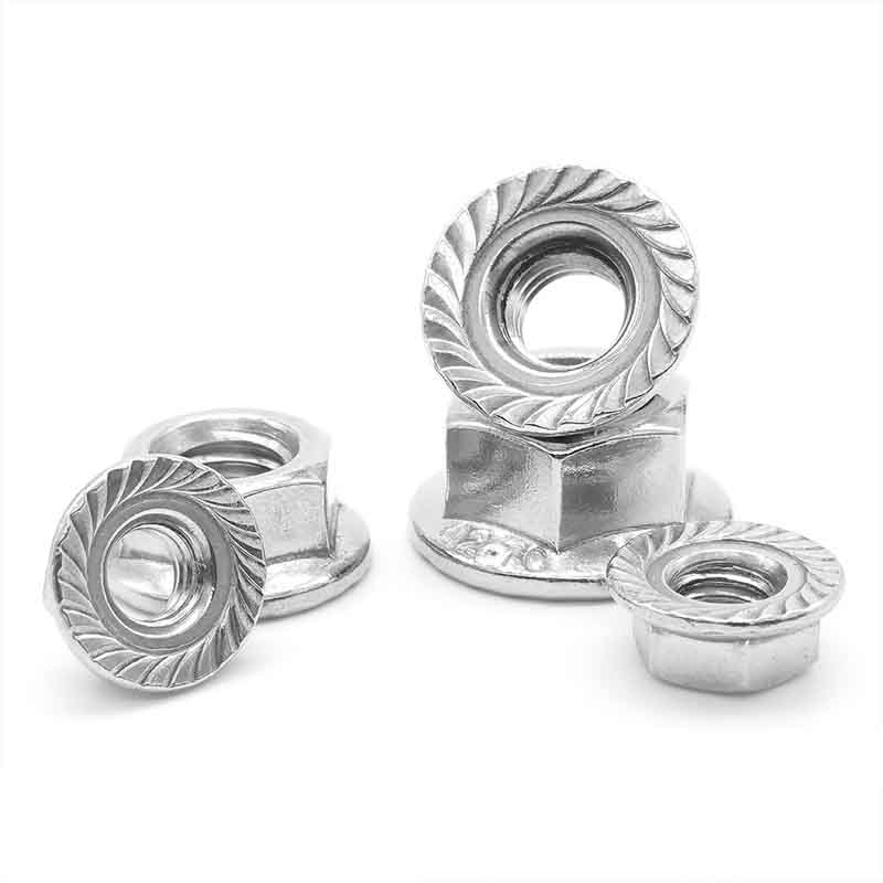 Turime šešiakampių flanšinių veržlių, skirtų pramoniniams pastatams, versijas, kurios laikosi tvirtos. Jie turi nemetalinę dalį, dažniausiai nailoną, įstrigusį viršutinėje veržlės sriegių dalyje. Kai priveržiate veržlę, ši dalis trinasi į varžto sriegius. Tai sukuria savotišką „pastovųjį sukimo momentą“, kuris neleidžia jam atsilaisvinti net esant vibracijai, smūgiams ar temperatūros pokyčiams. Ir jie vis dar išlaiko flanšo konstrukcijos didelį stiprumą ir apkrovą paskirstančius pranašumus.
