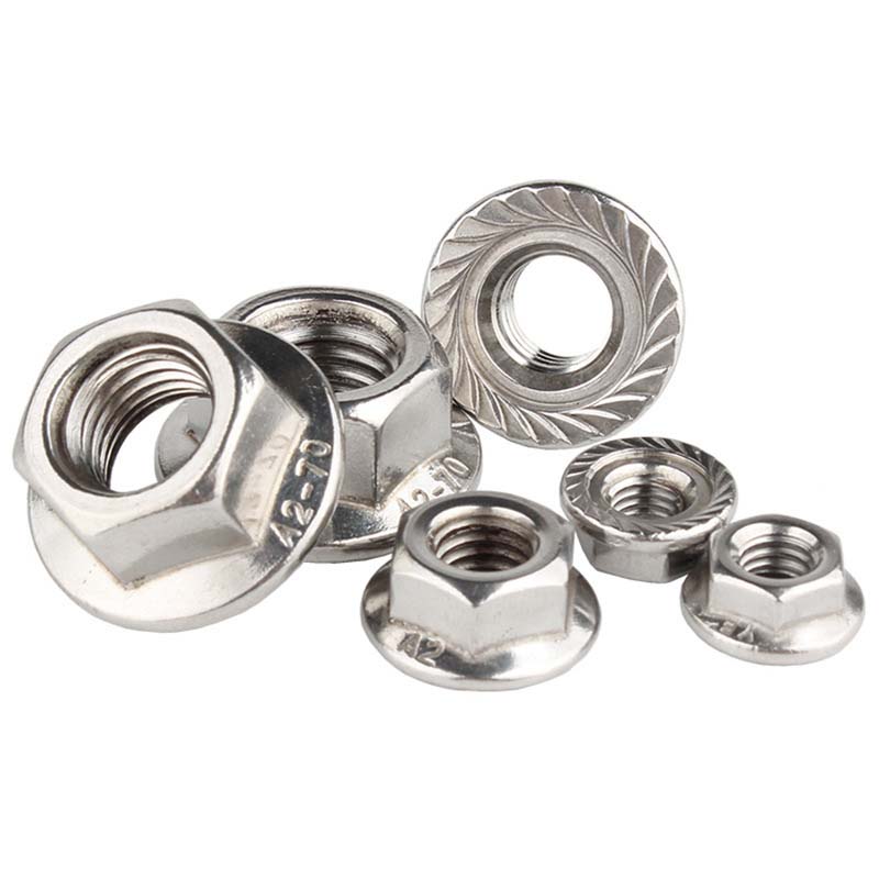 Šešiakampiai riešutai su flanšuĮpilkite sukibimo ir apsaugos be papildomų dalių. Jie yra šiek tiek brangesni nei pagrindiniai riešutai, tačiau sutaupykite laiko ir sumažinkite laisvą aparatūrą. Puikiai tinka greitam pataisoms ar darbams, kur svarbu paviršiaus priežiūra.