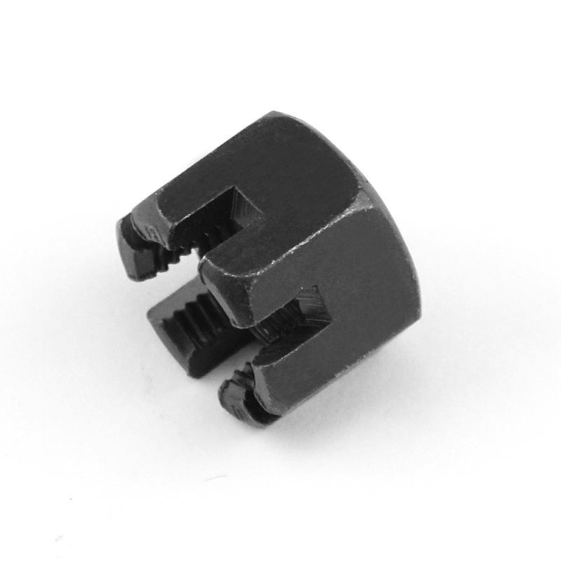 | Pagrindinė funkcija | Šios viršuje esančios angos naudojamos fiksavimo kaiščiams arba saugos lynams pritvirtinti. Priveržę veržlę, perkiškite kaištį per šias angas ir varžto skylutes. Taip jis pritvirtins (net esant stipriai vibracijai, veržlė neatsipalaiduos). Tai paprastas mechaninis užraktas, kuriam nereikia jokių sudėtingų dangų ar papildomų komponentų. |