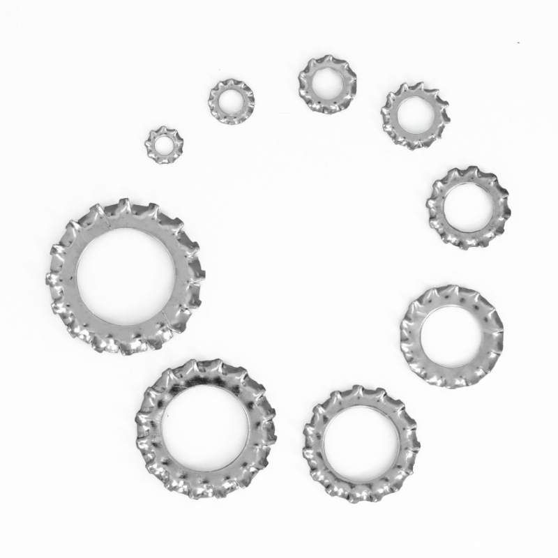 A:Vidinė dantų užrakto poveržlėyra sukurtas vietoms, kuriose yra daug vibracijos, pavyzdžiui, automobiliuose ar mašinose. Dantys, esantys viduje, kaskite į varžtą/veržlę ir paviršių, prie kurių jie yra pritvirtinti, sukurdami trintį, kovojančią su verpimu. Tai neleidžia jiems atsipalaiduoti, kai vyksta judėjimas ar sunkios apkrovos, laikui bėgant palaikant ryšį. Dantų dizainas gerai veikia minkštas medžiagas ar paviršius, kurie nėra visiškai lygūs.