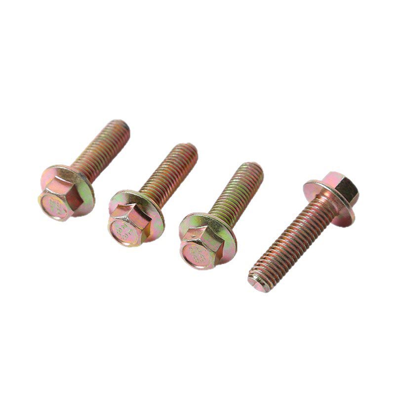 Šis metrinės klasės 8.8 šešiakampių flanšinių varžtų tipas turi įmontuotą neslidumą, daugiausia dėl dantytos flanšo pagrindo konstrukcijos. Tekstūruotas paviršius sukuria papildomą trintį tarp varžto ir tvirtinimo paviršiaus, neleidžiant galvutei slysti ar pasislinkti priveržus arba šiek tiek judant. Jam nereikia papildomų poveržlių, kad būtų užtikrintas stabilus sukibimas, o įprasto surinkimo ir kasdieninio naudojimo metu jis išlieka išlygintas, neslysta iš vietos. Kad būtų apsaugotas nuo atsipalaidavimo, flanšo struktūros ir tvirto sriegio tolerancijos derinys padeda išvengti atsitraukimo. Flanšas tolygiai paskirsto suspaudimo jėgą visoje kontaktinėje srityje, sumažindamas įtempių tarpus, dėl kurių atsipalaiduoja dėl vibracijos ar pakartotinio naudojimo. Siūlai yra apdirbti taip, kad tvirtai priglustų, todėl varžtas išlieka pritvirtintas net ir įrangoje, kuri veikia nuolat nedideliais drebėjimais ar periodiškais judesiais. Jis taip pat turi tinkamą atsparumą dilimui, kad būtų galima naudoti reguliariai pramonėje. Anglies plieno pagrindo medžiaga ir standartinė paviršiaus danga atlaiko kasdienę trintį, pasikartojantį priveržimą ir nedidelį dilimą. Šešiakampė galvutė apsaugo nuo apvalinimo dėl veržliarakčio naudojimo, o jungės kraštas greitai nesusidėvi, kai dažnai montuojama ir nuimama. Jis išlaiko struktūrinę formą ir funkciją dėl ilgalaikio įprasto naudojimo.