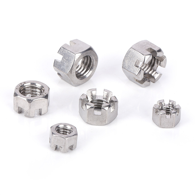 Didelius kiekius supakuojame į didesnes dėžutes su pertvaromis arba sluoksniuotais lakštais tarp partijų. Tai neleis švelnaus plieno šešiakampiams įpjovoms pilies veržlėms trintis vienas į kitą, o tai gali subraižyti paviršių. Ant kiekvienos dėžutės yra etiketė su dalies numeriu, kiekiu ir dydžiu.