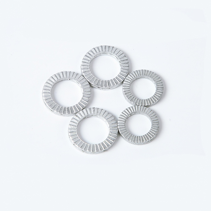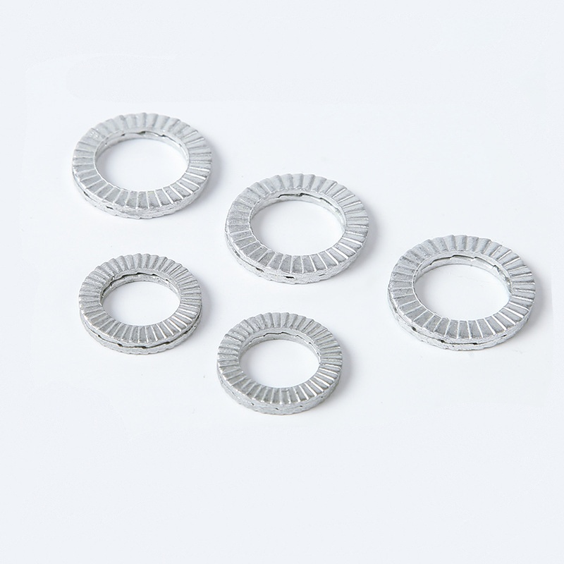 Padalintos poveržlės linkusios atsipalaiduoti ir nustoti dirbti, o dantytos užrakto poveržlės taip gerai nesugriebia. Tačiau „Mission Critical“ du raukšlių fiksavimo poveržlės yra geresnės - jie patikimiau užfiksuoti, naudodamiesi pavasario ir trinties. Palyginti su užrakto riešutais su nailono įdėklais ar visų metalų, šios dvigubos poveržlės paprastai gali valdyti aukštesnę temperatūrą. Be to, jie neturi problemų dėl to, kaip gerai siūlai tinka.