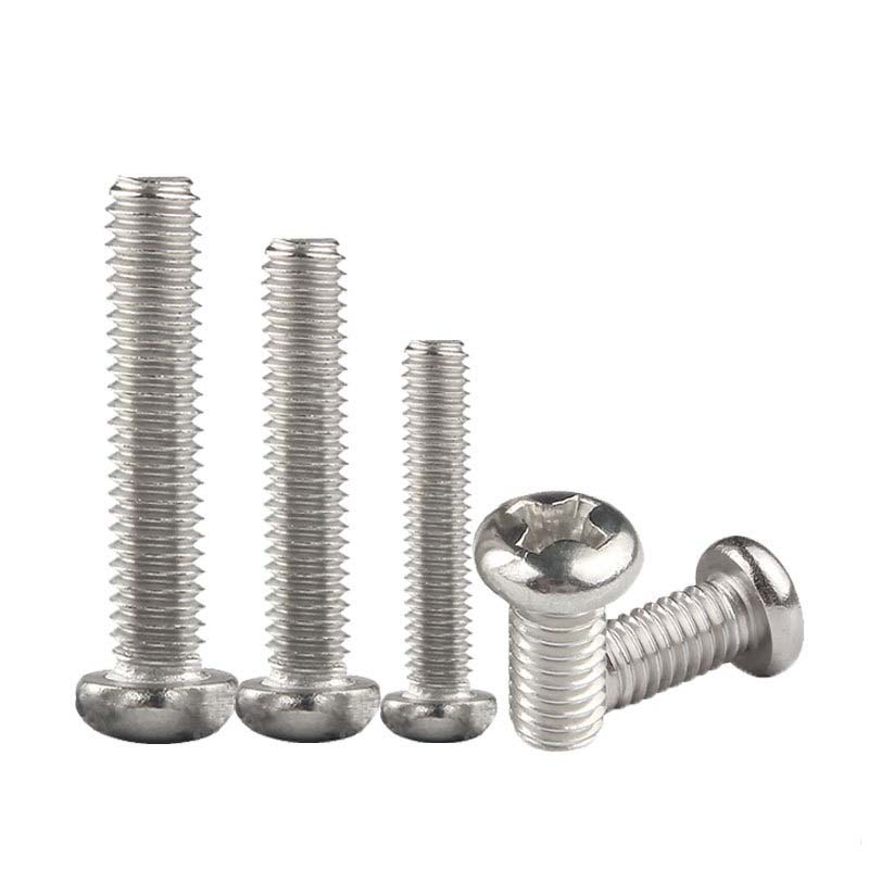 Kepimo galvos varžtas su H tipo kryžminiu įdubaAteikite standartinių ir pasirinktinių dydžių, kad atitiktų skirtingus poreikius. Įprasti skersmenys svyruoja nuo M2 iki M12, o ilgis nuo 5 mm iki 100 mm. Kryžiaus („Phillips“) laiko tarpsniai yra PH1, PH2 ir PH3 dydžiai, todėl savo darbui galite naudoti reikiamą sukimo momento kiekį. Siūlai atitinka metrinius (ISO) arba „Imperial“ (UNC/UNF) standartus, todėl jie dirba su aparatūros sistemomis visame pasaulyje. Žemo profilio galvutės paprastai yra 1,5–3 mm aukščio, o tai puikiai tinka taupyti erdvę.