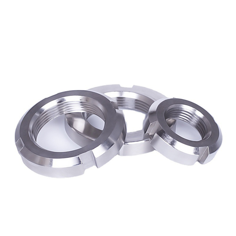 Tiksliai apdorota išpjova apvali veržlė yra specialios tvirtinimo detalės, naudojamos mechaninės įrangos dalims laikyti, kai įprastos veržlės gali atsilaisvinti nuo vibracijos. Veržlės daugiausia naudojamos automobiliuose ir pramoninėse mašinose, ypač ašys, velenai ir judančios dalys, kurias reikia nuolat užrakinti.