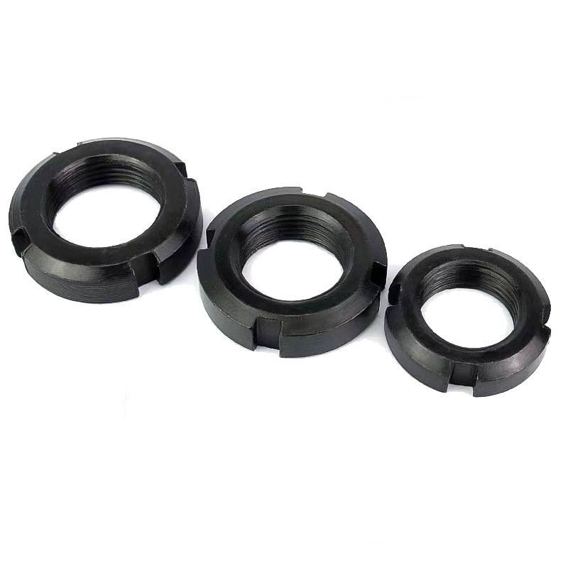 Kritiškai svarbi fiksavimo apvali veržlė su įpjovomis