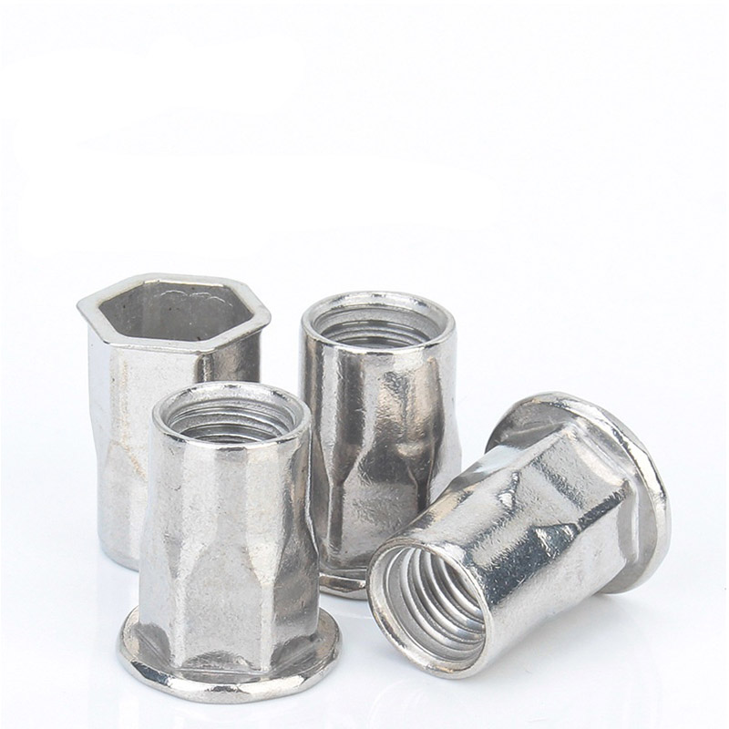 Saugios tvirtinimo šešiabriaunės kniedės veržlės gaminamos iš įvairių patvarių medžiagų, kad atitiktų įvairius įvairių pramonės šakų ir projektų pritaikymo poreikius, įskaitant įprastą anglinį plieną, nerūdijantį plieną (pvz., dažniausiai naudojamą 304 ir 316 klasės), lengvą aliuminį ir laidųjį varį. Tinkamos veržlėms skirtos medžiagos pasirinkimas daugiausia priklauso nuo praktinių veiksnių, tokių kaip tvirtinimo detalės tvirtumo lygis, atsparumas korozijai įvairiuose parametruose ir specifinės aplinkos sąlygos, kurioms tvirtinimo detalė bus veikiama ją naudojant.