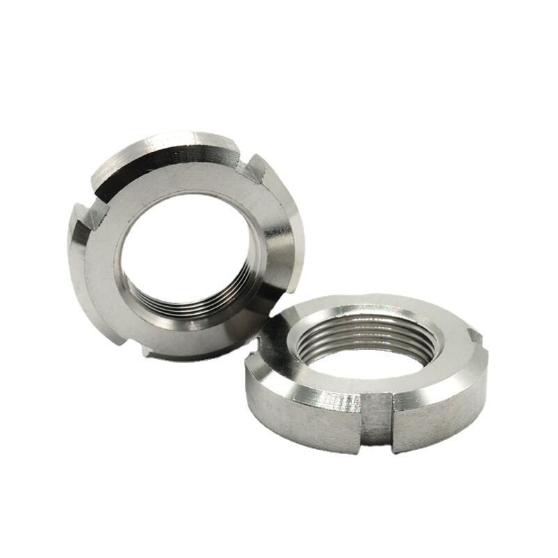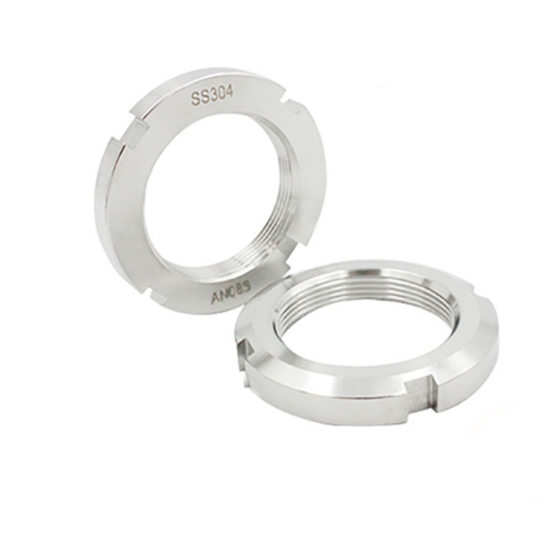 Kritiškai svarbi fiksavimo apvali veržlė su įpjovomis