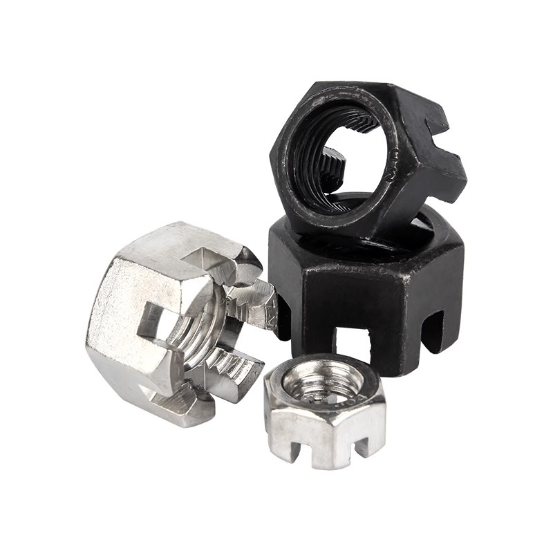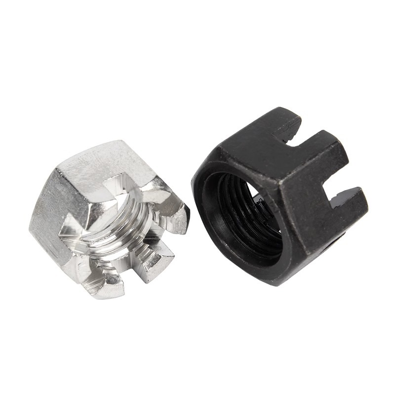 Mes laikomės pagrindinių pramoninės kokybės medžiagų, skirtų šiems įpjovoms šešiakampiams pilies veržlėms, be jokių įmantrių ar nereikalingų priedų, kad veikimas būtų stabilus ir praktiškas. Dauguma variantų yra pagaminti iš standartinio anglinio plieno arba nerūdijančio plieno, pasirinkto kasdieniam pramoniniam naudojimui. Anglies plieno versijų paviršius reguliariai apdorojamas, kad būtų išvengta elementarių rūdžių ir nusidėvėjimo, o nerūdijančio plieno versijos geriau atlaiko drėgmę ir nedidelę koroziją. Naudojame tik įprastus pramonės standartus atitinkančias medžiagas, nekeičiame žemos kokybės pakaitalų, o kiekviena partija atlieka paprastą medžiagų patikrinimą, kad įsitikintume, ar ji atitinka įprastus surinkimo ir naudojimo reikalavimus.