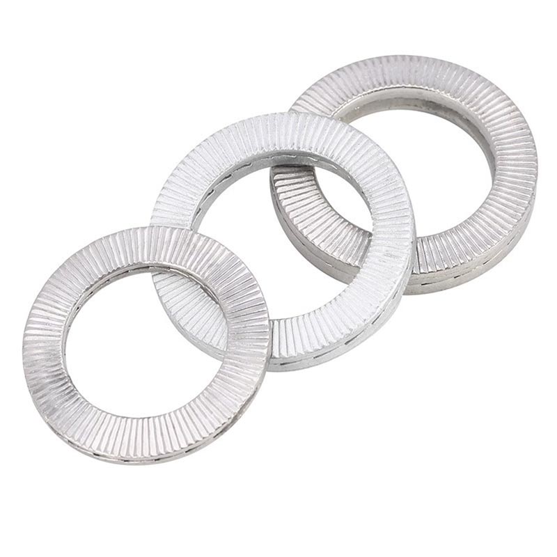 The Dviejų sluoksnių savaiminio fiksavimo poveržlėMašinuose, kurie daug purto, pagalvokite apie variklio laikiklius, konvejerio diržus ar vėjo jėgaines. Jiems gerai sekasi, net tada, kai viskas susitvarko. Jie taip pat yra raktas į daiktus, kurie tikrai negali sau leisti atsipalaiduoti, pavyzdžiui, automobilių pakabos, traukinių dalių ar gamyklos robotų.