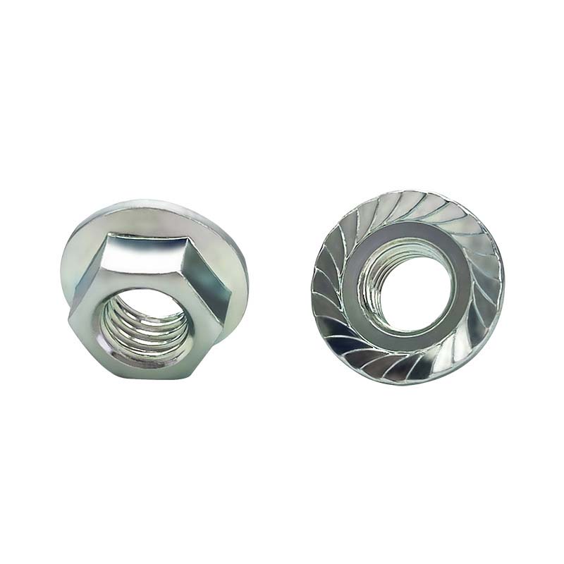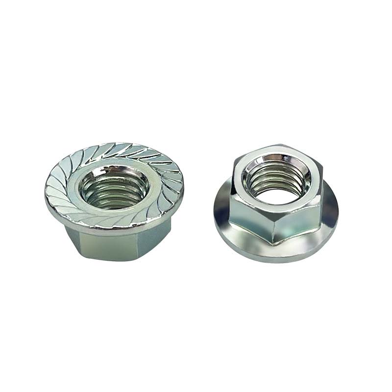 2 tipasšešiakampiai riešutai su flanšuTurėkite storesnę, platesnę bazę ir gilesnius siūlus. Naudojamas sunkioms mašinoms, priekaboms ir dar daugiau. Jie yra brangesni už standartines flanšo veržles, tačiau geriau veikia atšiaurioje aplinkoje, pavyzdžiui, lauko įrangoje ar mašinų, veikiamų šilumos, drėgmės ar nuolatinės vibracijos. Daugeliu atvejų galite pašalinti papildomus komponentus, tokius kaip užrakto poveržlės. Šie riešutai dažnai naudojami gamyklos įrangoje, sunkvežimių remonte ar pramoninėje konstrukcijoje, kur reguliarios veržlės gali sugesti. Plokšti flanšai lengvai suderina, tiesiog suderindami dydį (imperatorišką ar metrinę) prie varžto.