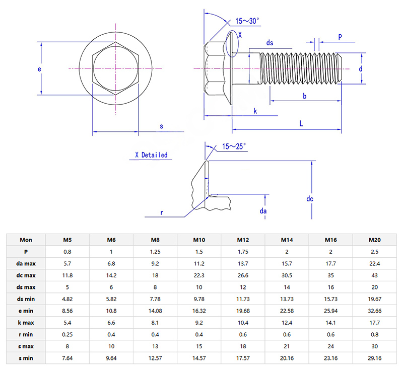Aukšto sukimo momento šešiakampis galvos flanšo varžtai