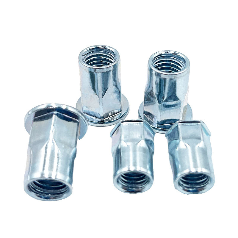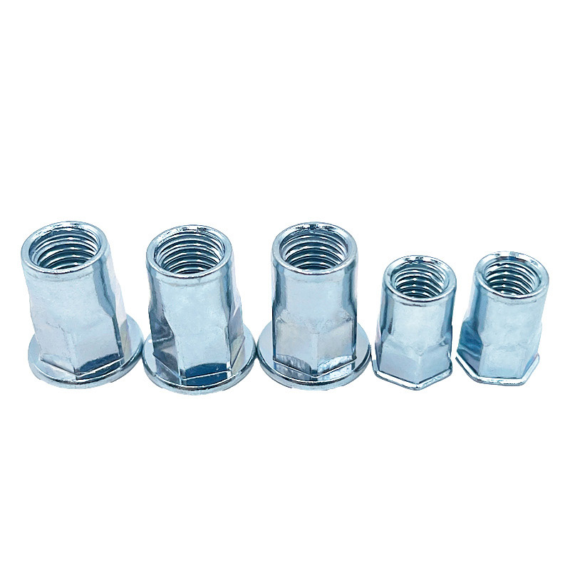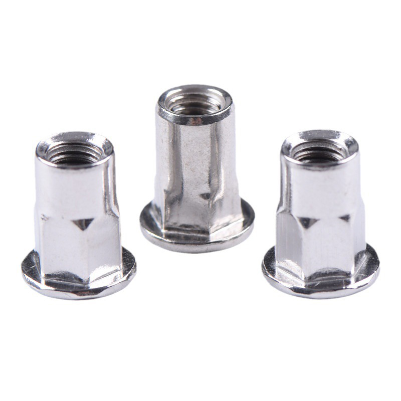 Universali šešiakampė kniedės veržlė turi šešiakampį korpusą. Skirtingai nuo apvalių, ši forma apsaugo jį nuo sukimosi, kai jis sumontuotas. Tai yra pagrindinė jo dizaino dalis – jis pagamintas taip, kad tilptų į atitinkamas šešiakampes skyles. Tokiu būdu, kai priveržiate varžtą, veržlė kartu su juo nesisuks. Yra įvairių tipų, pvz., pilno šešiakampio ir pusiau šešiakampio. Galvos taip pat yra plokščios ir mažos įdubusios galvutės. Galite pasirinkti tai, kas atitinka jūsų poreikius, nesvarbu, ar norite, kad ji būtų viename lygyje su medžiaga, ar tik šiek tiek išsikištų po įdiegimo.
